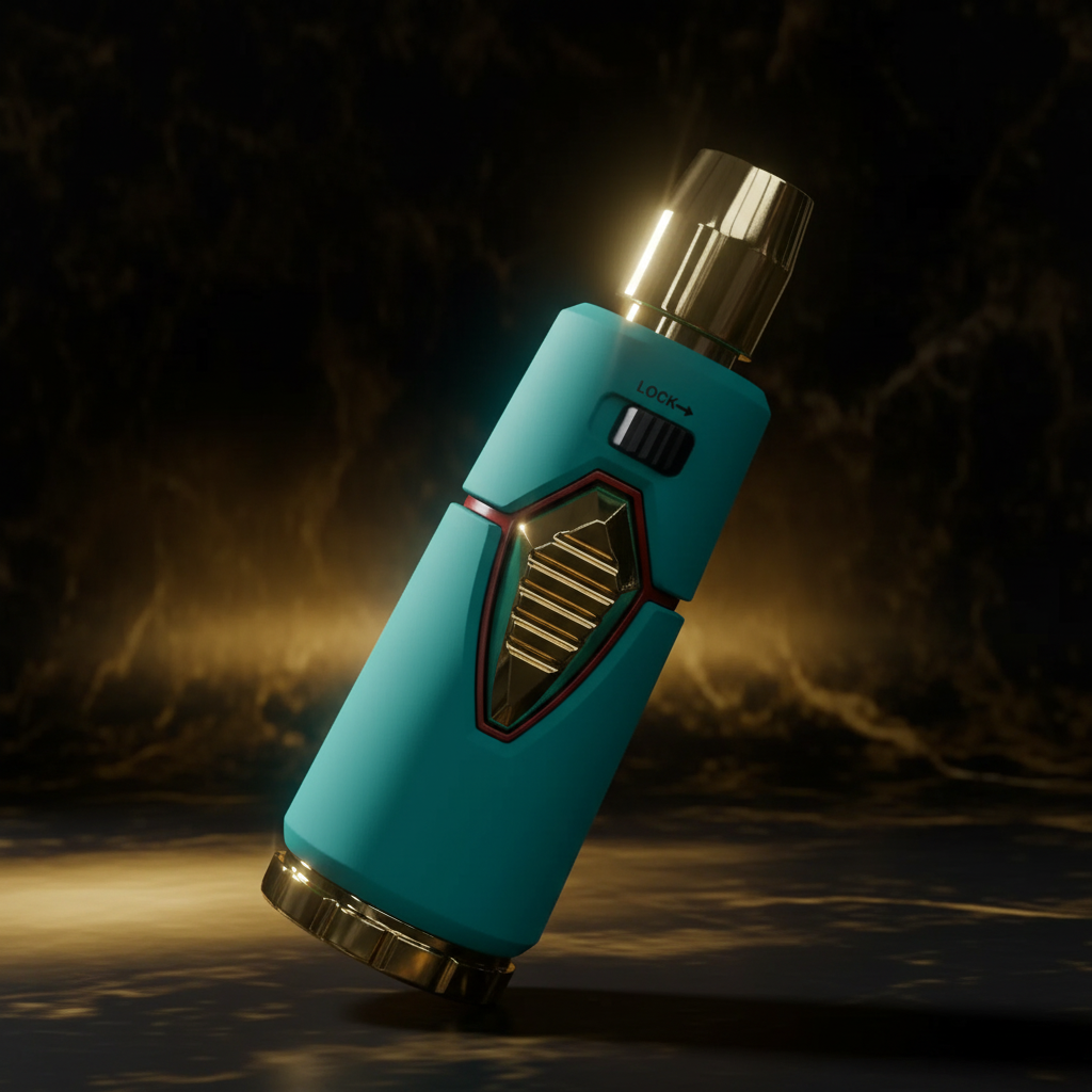 Features a sturdy gold-colored base embossed with 'SPIDER TORCH' branding. Available in bold finishes like Woodgrain Black and Teal with sleek metallic tops.